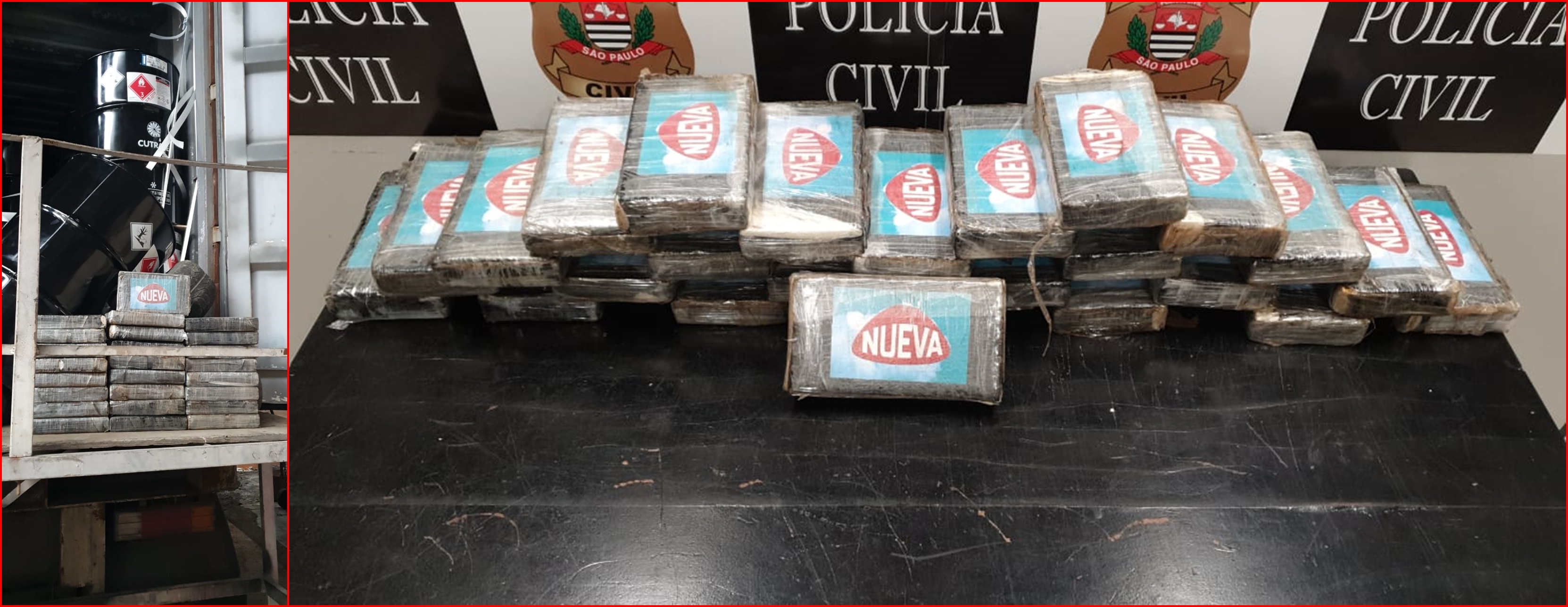 Policiais da 1º Delegacia de Polícia de Investigações Gerais de Santos (Deinter 6) prenderam em flagrante, na noite de ontem (14), um caminhoneiro transportando 25 tijolos de pasta base de cocaína, escondidos dentro de uma carga de óleo de laranja que seria levada ao porto de Santos.