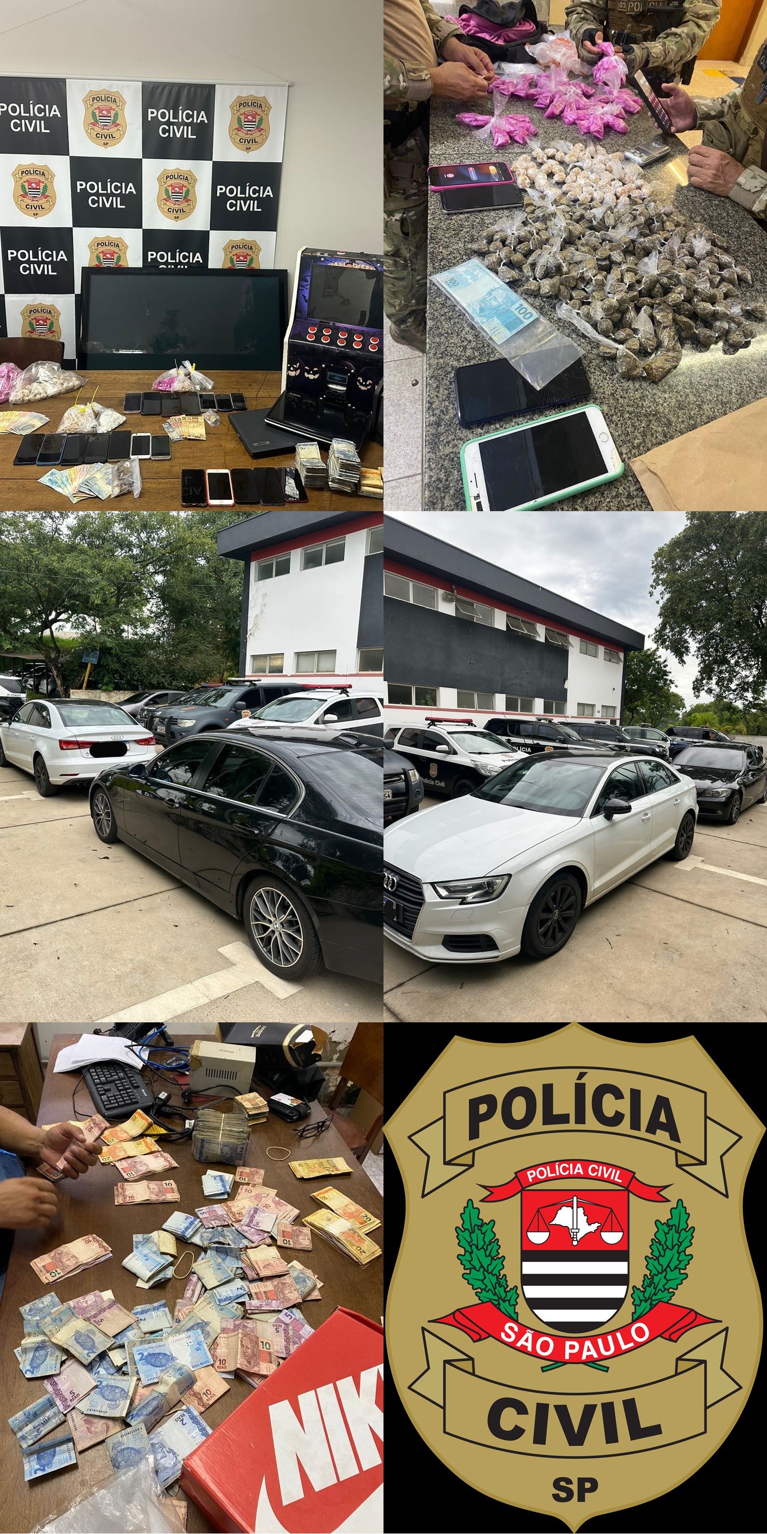 Nesta sexta-feira 17/02, foram cumpridos 11 mandados de busca e apreensão, sete em Tietê e quatro em Cerquilho (Deinter 7). A partir de diligências, os agentes apreenderam mais de duas mil porções de entorpecentes, entre cocaína, maconha e crack, prontas para a venda ilegal, cerca de R$ 15 mil em dinheiro, dois automóveis de luxo, uma moto de 600 cilindradas, aparelhos celulares, máquinas caça-níqueis e outros objetos.