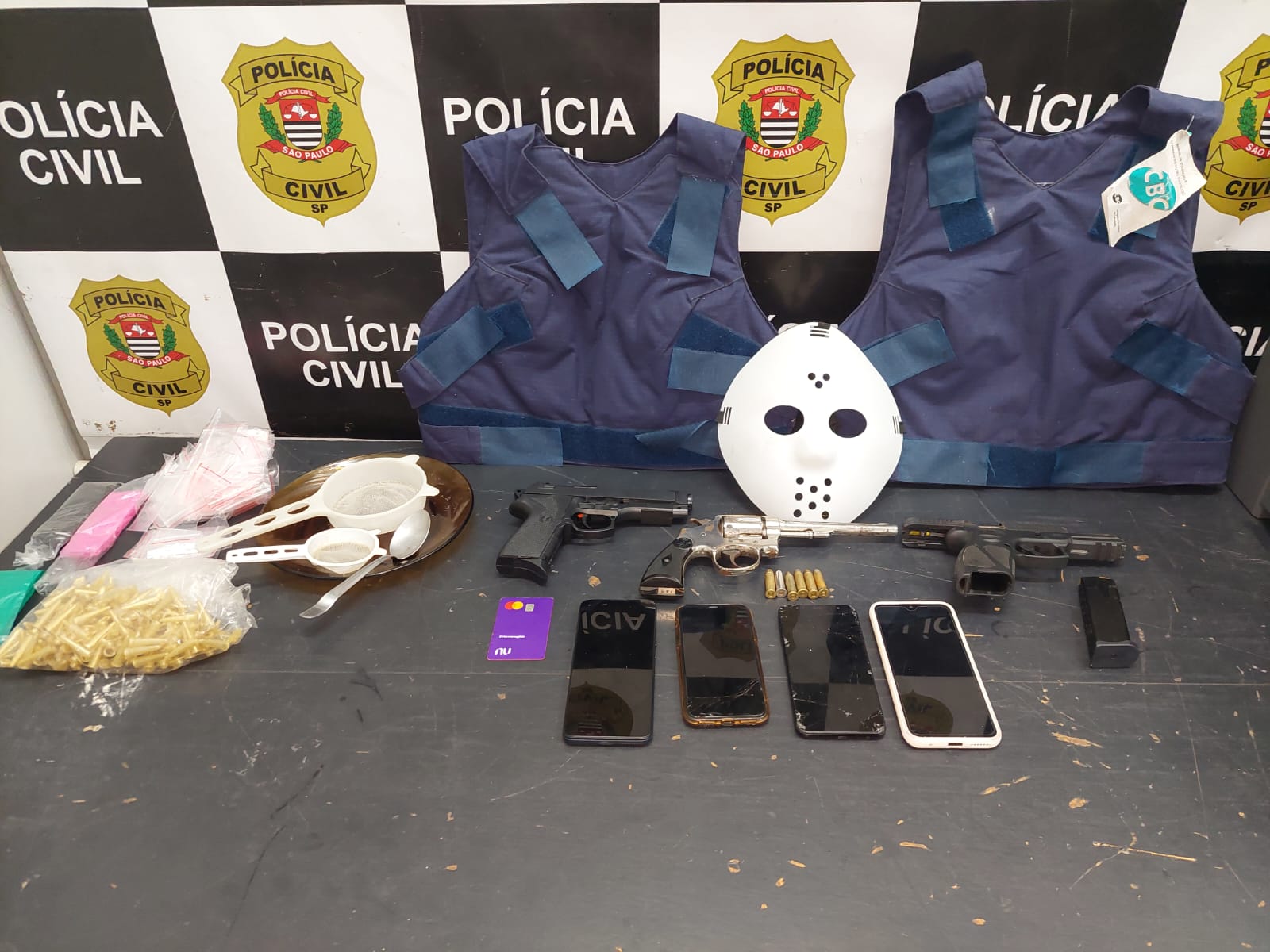 Os trabalhos policiais foram realizados por integrantes do Departamento de Polícia Judiciária de São Paulo Interior 9 (Deinter 9), por meio da Delegacia de Investigações Gerais de Americana (DIG), com o apoio Delegacia Seccional de Americana, da Divisão Especializada de Investigações Criminais de Piracicaba (Deic), 1ª Delegacia de Investigações Gerais de Piracicaba (DIG-Deic), 1ª Delegacia Antissequestro do Dope e Tático Integrado de Grupos de Repressão Especial de Curitiba (Tigre). Durante as diligências, os agentes prenderam em flagrante um homem que faz parte do grupo criminoso e foram apreendidas armas de fogo, munições, coletes balísticos e petrechos para tráfico de drogas. A vítima foi libertada pelos criminosos no município de Sumaré. Outros dois caminhoneiros sequestrados foram liberados no mesmo momento. Três pessoas foram indiciadas e a investigações prosseguem para localizar e identificar demais integrantes desta organização criminosa.