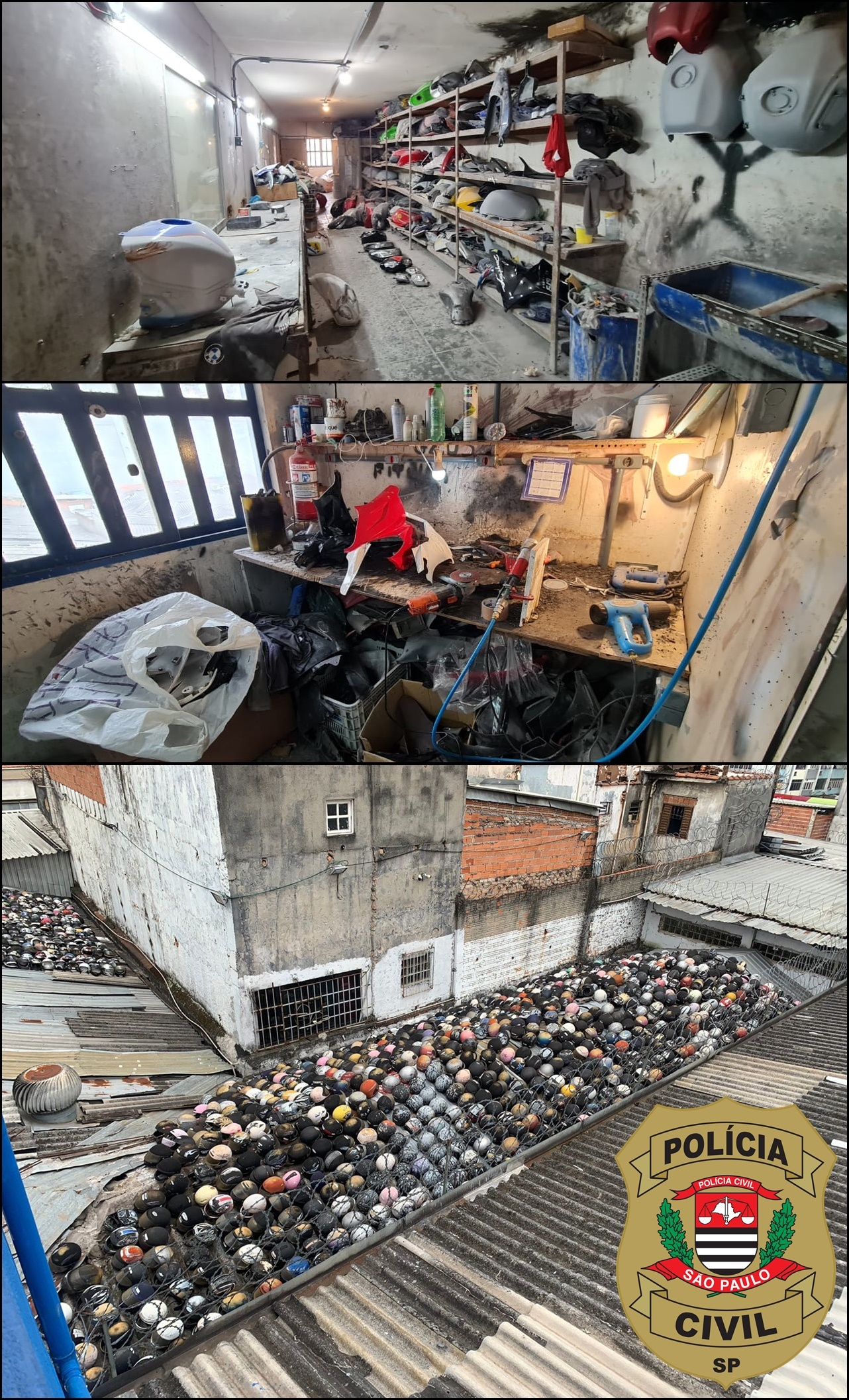Na vistoria, os agentes encontraram lanternas, rodas, faróis, tanques, carenagens, escapamentos e diversos acessórios totalizando cerca de 3200 peças. Todo o material, bem como uma motocicleta modelo BMW/GS 800 com a carenagem dianteira destruída, foi apreendido para perícia do Instituto de Criminalística (IC).